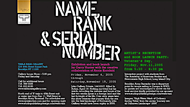 -NAME RANK & SERIAL NUMBER - Garry Hunter - ARTIST’s RECEPTION NOV 11 details