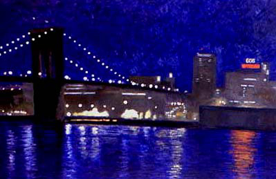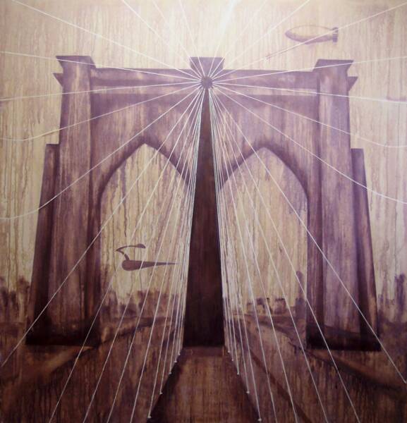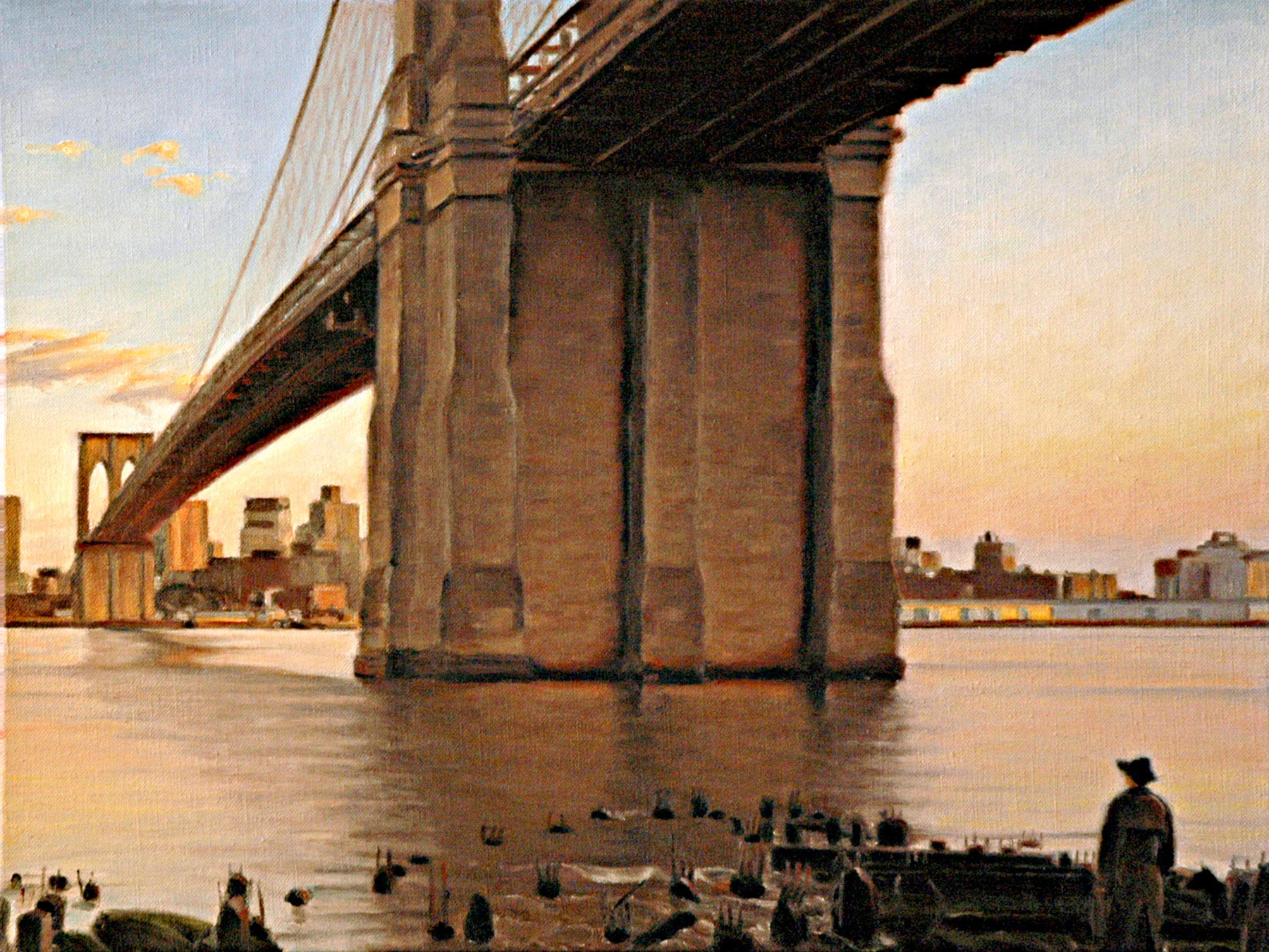Gregory Frux Brooklyn Bridge 2 , oil on plywood, 17 ½” x 26”