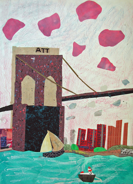 Lucille Nurkse The River and The Bridge, 30" x 22" Collage