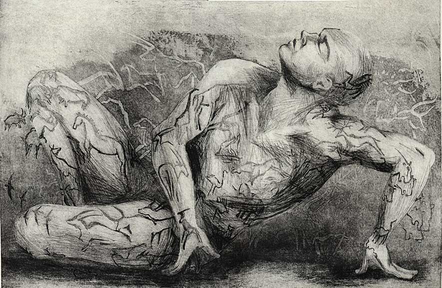 Ana Bianchi - el zool humano (human zoo), drypoint / aquatint 26.25 x 18.75 click for 300dpi