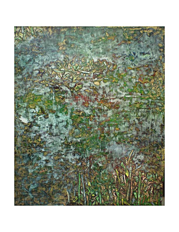 Kathleen Hayek Spanish Moss III Monoprint with chine coll 30"H x 22"W" click for 300dpi