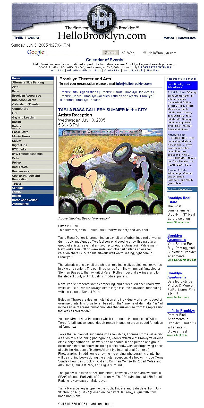 Tabla Rasa is an art gallery that profiles works of emerging, mid- career, and established artists of Brooklyn, New York, and the United States. Located in a turn of the century carriage house in industrial Sunset Park, Brooklyn, Tabla Rasa presents solo and group exhibitions in a wide range of styles, themes and media.